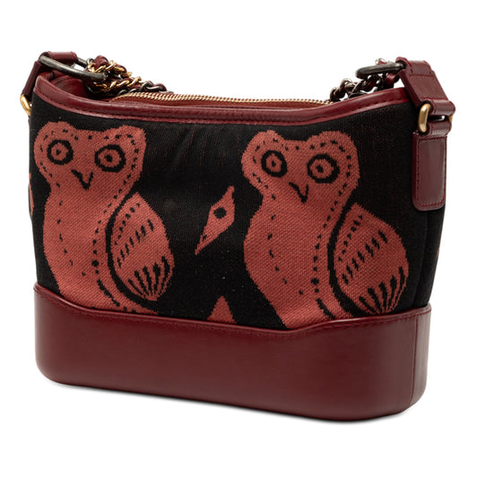 Chanel Small Knit and Calfskin Owl Print Gabrielle Hobo