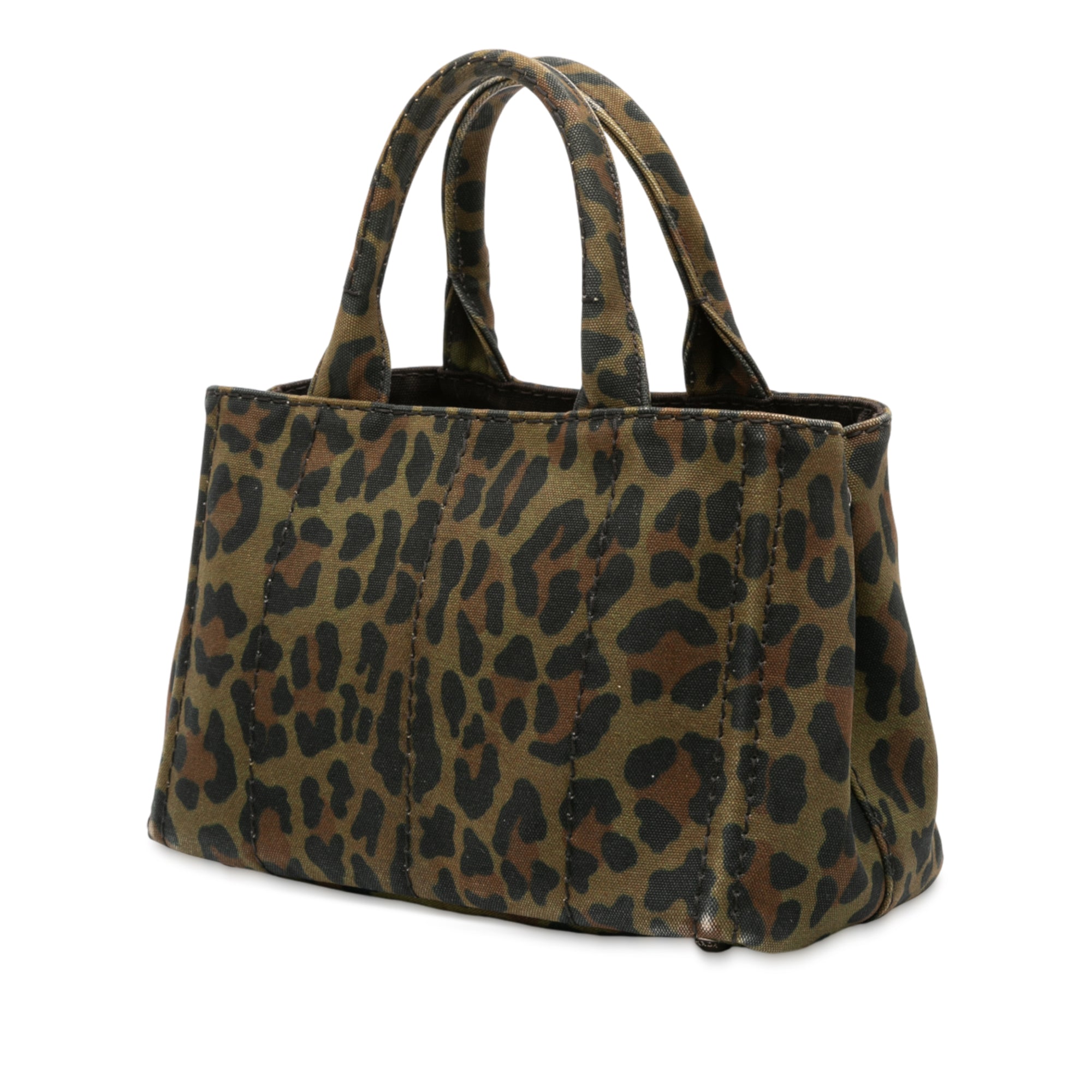 Prada Small Leopard Print Canvas Canapa Satchel