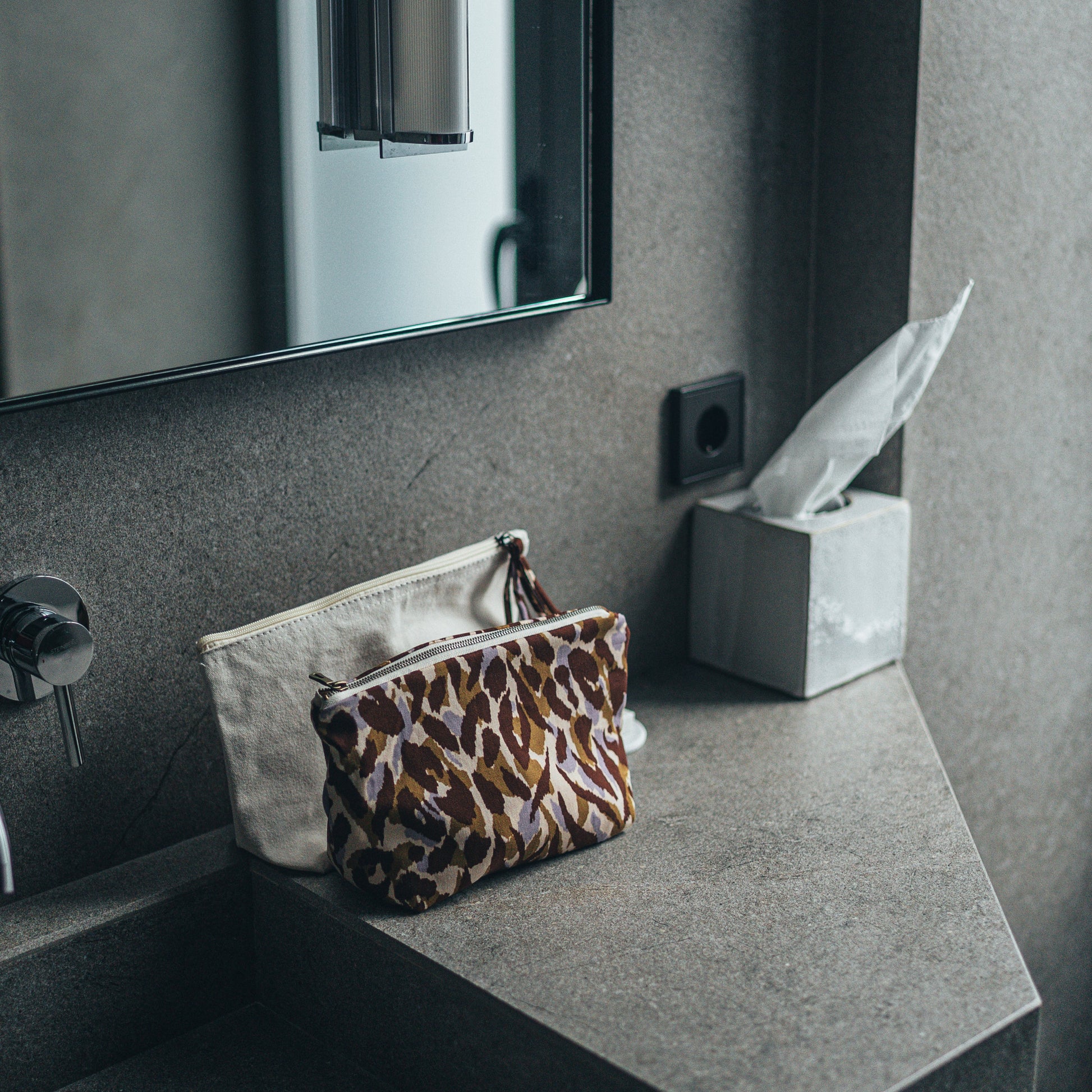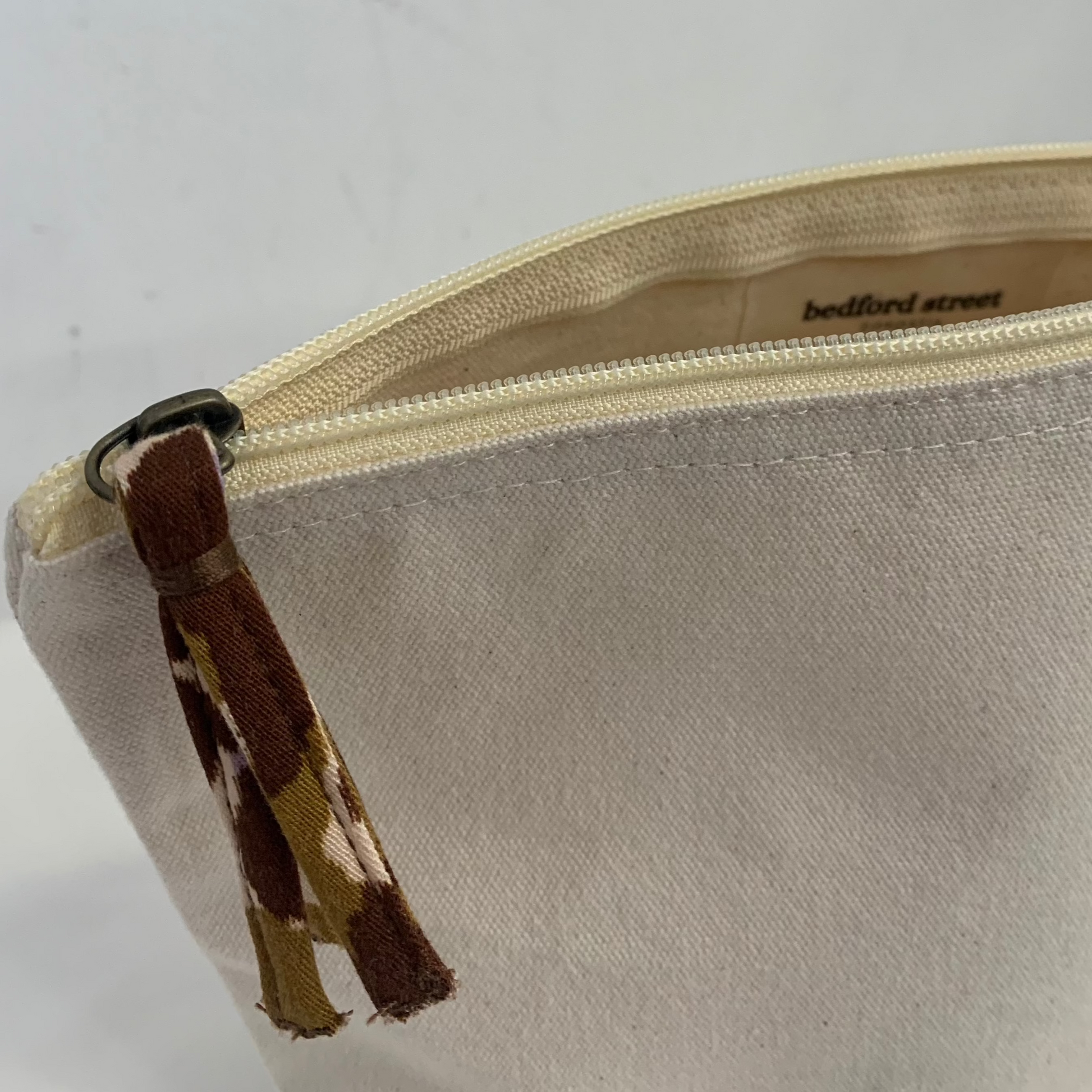 - This pouch is made with the most beautiful canvas and print zipper.